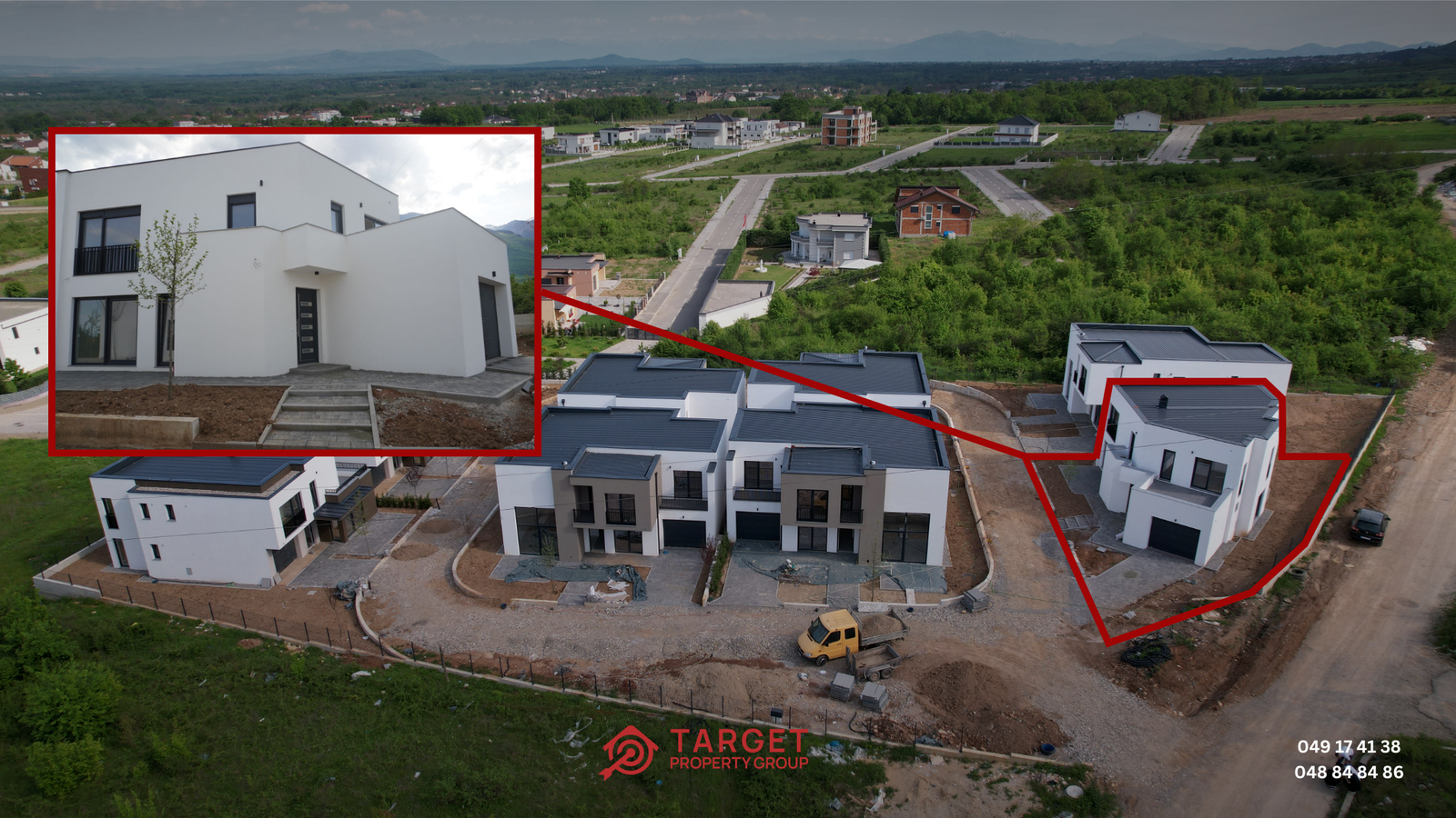 Shtëpia ka gjithsej: 4 dhoma gjumi, 3 banjo + 1 WC, 1 kuzhinë, 1 sallon, 2 terasa dhe garazhë.